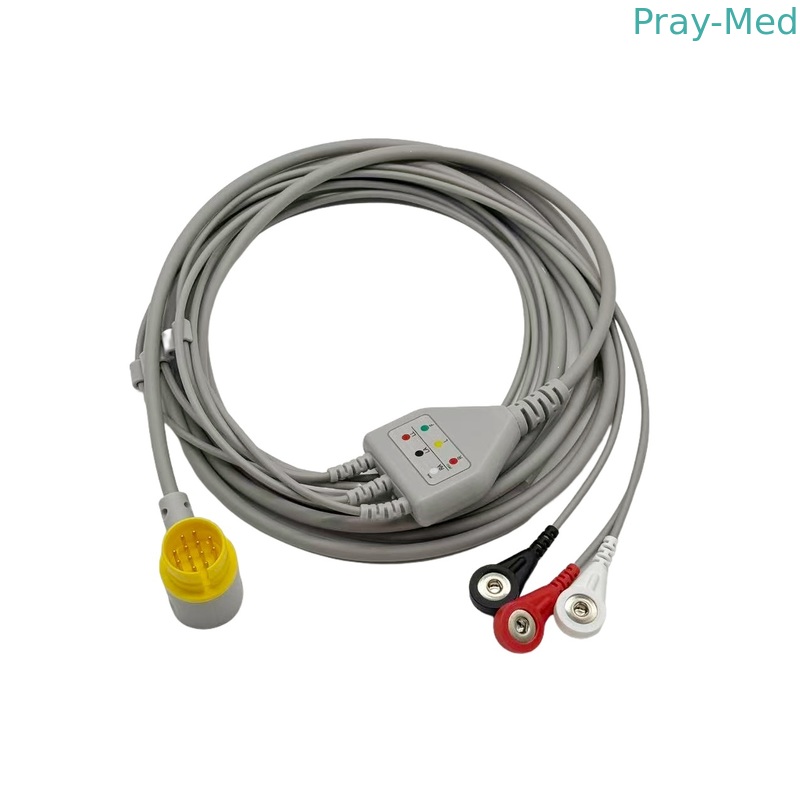 کابل ECG یک تکه 12 پین CU-HD1 Lifegain با 3 لید AHA Snap